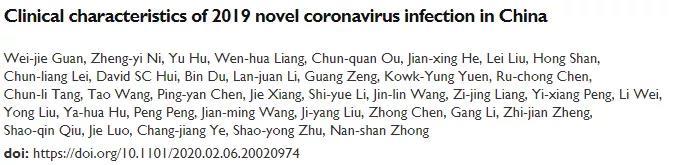2月9日,由国家卫生健康委高级别专家组组长、中国工程院院士钟南山领衔的“中国2019年新型冠状病毒感染的临床特征”研究,在预印本网站medRxiv上发表。(注:medRxiv的论文均未经同行评审)