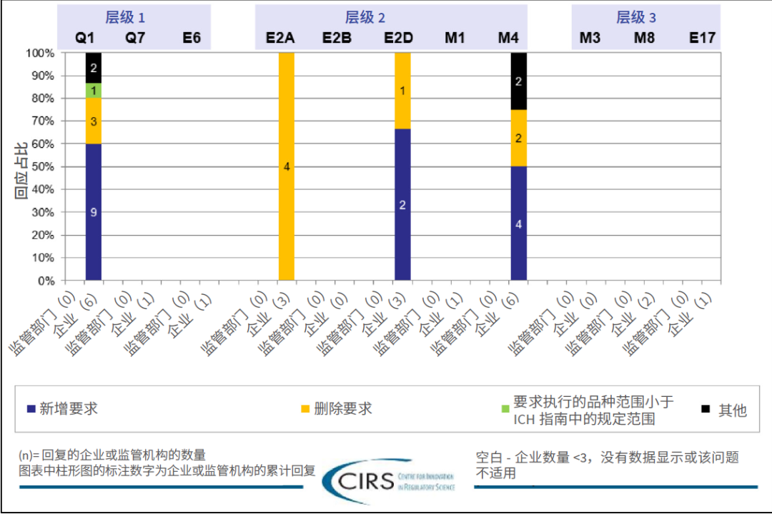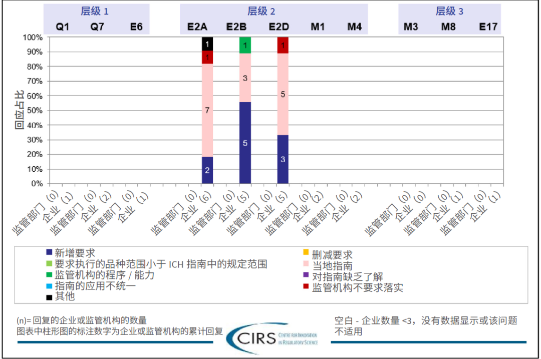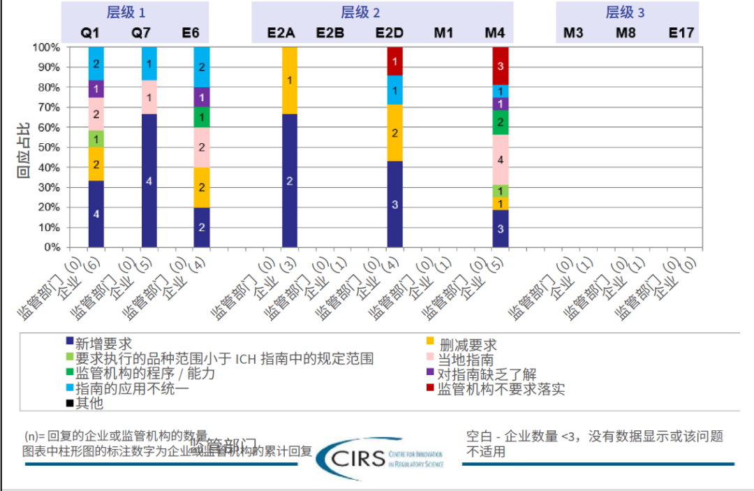 对于Q1、Q7、E6、E2A、E2D、M1 和M4,有n>3家以上企业回复,理由多种多样,与新增要求和指南应用不统一的相关回复最多。