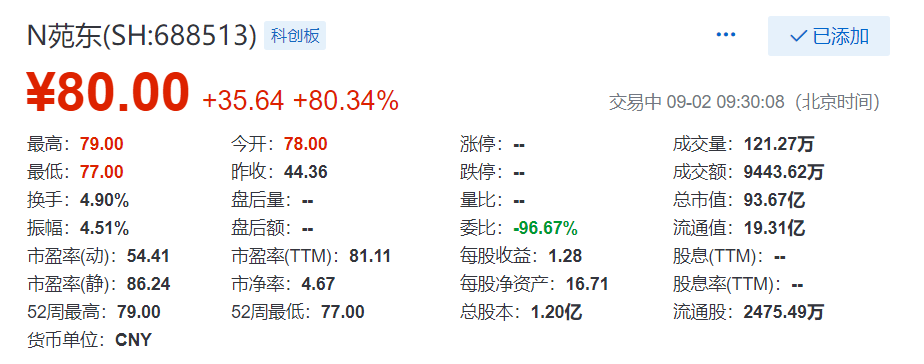 9月2日,成都苑东生物有限公司(以下简称:苑东生物)正式在科创板敲钟上市,开盘价78.00元,大涨73.54%,市值高达93.67亿元。据招股书披露,此次科创板IPO,苑东生物拟以44.36元的发行价发行3009万新股,募集资金11.61亿元用于重大疾病领域创新药物系列产品产业化基地建设、药品临床研究项以及生物药研发等项目。