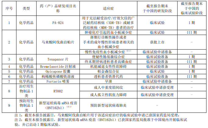 复星医药从外部许可引进产品的主要研发进展