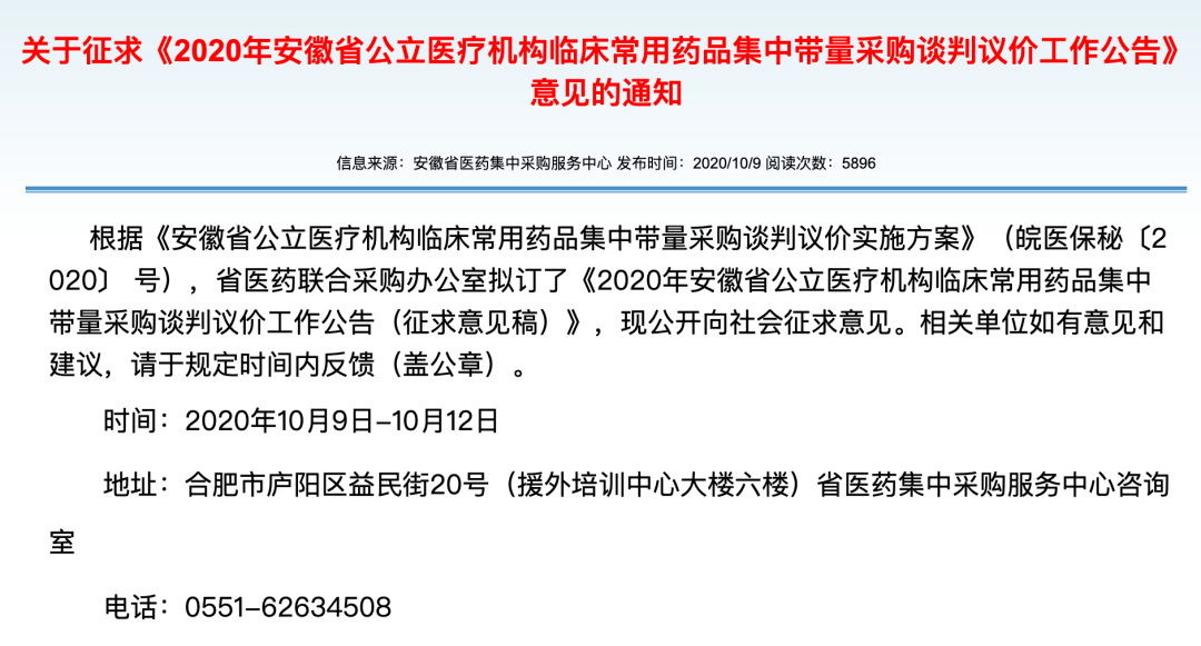 10月9日,安徽省医药集中采购平台发布《关于征求<2020年安徽省公立医疗机构临床常用药品集中带量采购谈判议价工作公告>意见的通知》(以下简称“征求意见稿”),将对临床常用呼吸系统用药、抑酸药、肝胆疾病用药及医学影像对比剂四类药品进行集中带量采购谈判议价,拟谈判药品总数多达231个。这些药品将分别选取占2019年度该省公立医疗机构四类采购额前90%的产品,并结合临床实际组织专家遴选确定。