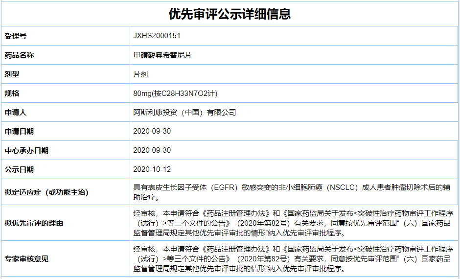 - NSCLC术后辅助治疗!奥希替尼在华新适应症上市申请拟纳入优先审评