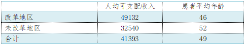 通过抽样数据和政策文件匹配,66个调查地区中实施门诊统筹改革的占39.4%(26个地区)、未实施门诊统筹改革的占60.6%(40个地区)。总体来看,实施门诊统筹的地区经济状况相对较好,这可能也是改革先行的主要原因。从就诊患者的平均年龄来看,实施门诊统筹的地区就诊患者偏年轻,比未实施门诊统筹地区患者平均低6岁。