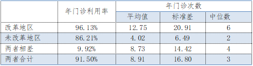 为比较门诊统筹改革地区与未改革地区患者医疗服务利用差异,我们作出了以下分析: