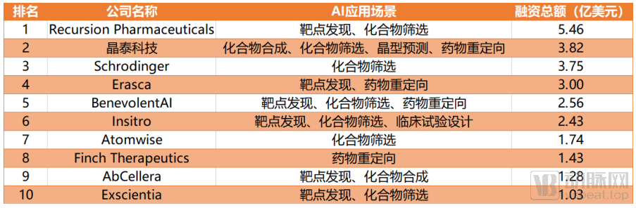 截止到目前,Recursion Pharmaceuticals完成融资总额达5.46亿美元,是目前获得融资总额最高的AI+新药公司。
