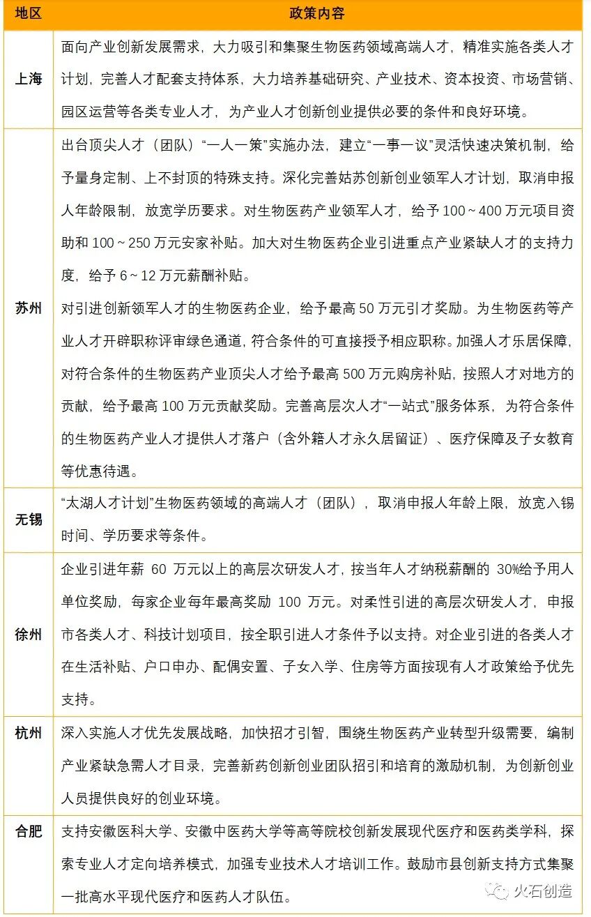 一是对于引进高端人才不仅提供分层次的货币补贴,还对人才安居、子女教育、户口申办、医疗保健等生活配套给予优惠。其中,苏州市人才引进政策较为完善,扶持力度大,对引入行业领军人才给予100-400万元项目资助和100-250万安家补贴,符合条件的生物医药产业顶尖人才给予最高500万元购房补贴。