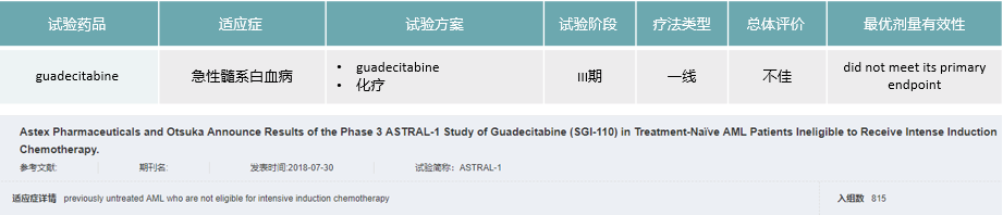 此前用于不适合强化化疗AML患者的ASTRAL-1试验也未达到主要临床终点