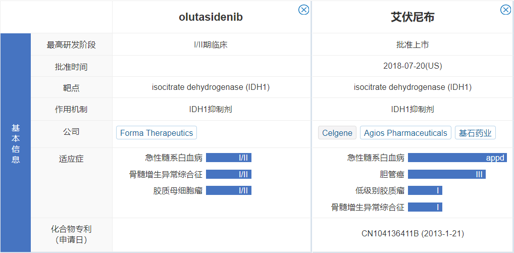 Olutasidenib是全球进度第二的选择性IDH1抑制剂,2018年FDA批准了第一个IDH1抑制剂艾伏尼布
