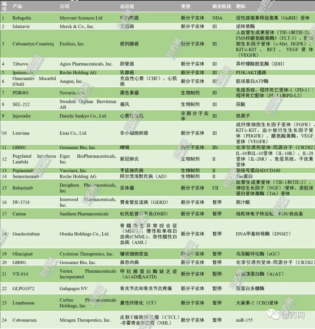 附表1:近一个月(2020年9月17日~2020年10月16日)临床试验数据不佳的药物