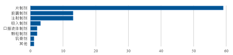 专利是影响原研药和仿制药市场状况的重要因素,决定着制药企业竞争的成败。事实上,所谓的专利药到期,通常指药物的基础专利(如化合物专利)到期。只有基础专利到期,才有可能进行仿制。根据医药魔方GenericsPick数据库,截至2020年11月25日,中国境内有83个III期临床~已上市药物的中国化合物专利会在未来5年到期,按剂型区分后的品种数量共有94种。这94个品种的剂型分布和疾病领域如下图所示。