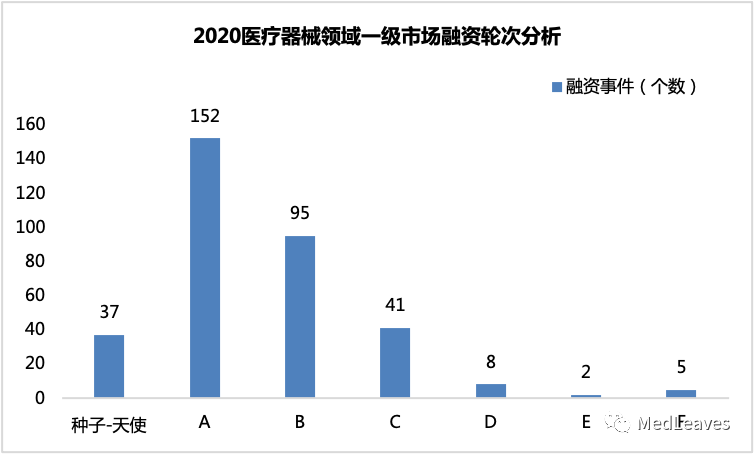 相较于医疗器械,IVD的融资轮次略微靠后,种子-天使轮融资事件较少,发展相对于医疗器械更快。