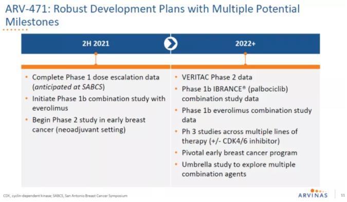 2022年,Arvinas和辉瑞预计将启动多项治疗转移性乳腺癌的III期临床试验,包括与CDK4/6抑制剂联用,并且展开治疗早期乳腺癌患者的关键性研究。