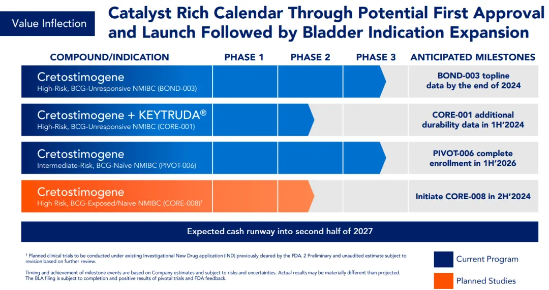 CG肿瘤学总裁兼首席运营官Ambaw Bellete表示:“我们很高兴最新数据表明,cretostimogene作为一种保留膀胱的治疗方法,可以极大地改善患者的预后和生活质量。”重要的是,BOND-003预计将在2024年底获得关键数据,我们期待向监管部门递交上市申请。”