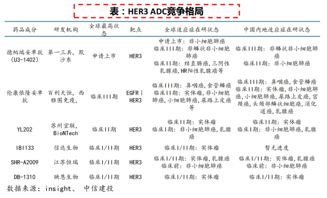 随着HER3 ADC药物在实体瘤的治疗潜力得到证实,不少药企纷纷布局。