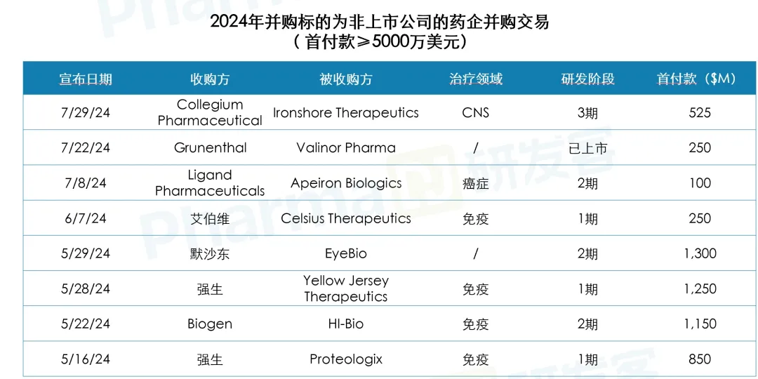 与此同时,大药企也乐意收购非公开上市的初创公司,因为相对收购上市公司,未上市的公司价格可能更便宜。