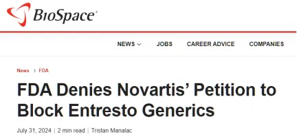 近期FDA驳回了诺华的请愿,这或将对Entresto原研药的市场独占权构成挑战,并可能加速仿制药的上市进程。