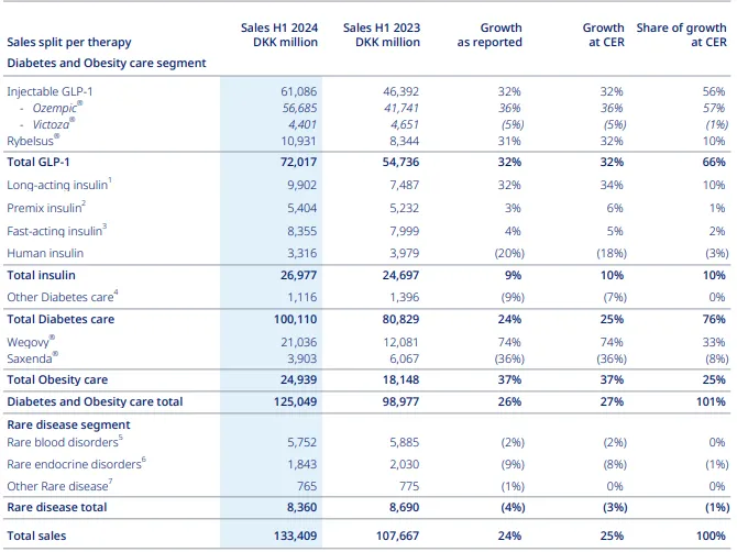 综合来看,司美格鲁肽在2024年上半年的业绩表现,不仅凸显了其作为诺和诺德的当家产品的地位,也显示了GLP-1类药物在全球糖尿病和肥胖治疗市场中的巨大潜力和影响力。