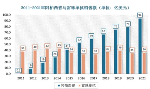 图片3:阿柏西普与雷珠单抗销售额对比 来源:参考来源2