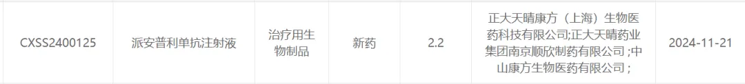 11月21日,中国国家药监局药品审评中心(CDE)官网公示,康方生物和正大天晴在研的抗PD-1抗体派安普利单抗注射液,以及正大天晴在研的盐酸安罗替尼胶囊上市申请获得受理。