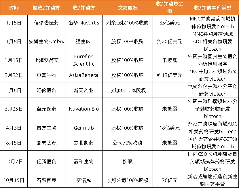 如新天药业收购上海汇伦医药85.12%股权,以实现“中药+化药”的双轮驱动;新诺威斥资76亿元购买石药百克100%股权加速打造更具竞争优势的创新生物医药平台;“四大老牌制药企业”之一的东北制药拟1.87亿元收购TCR-T疗法研发biotech鼎成肽源70%股权,还表示收购成功后将安排充足的科研和转化经费,且“上不封顶”。