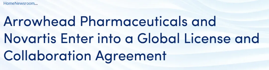 9 月 2 日,Arrowhead 宣布与诺华达成全球许可和合作协议,共同开发用于治疗帕金森病等突触核蛋白病的 siRNA 疗法 ARO-SNCA。