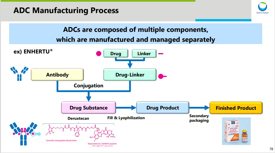 但同时还值得注意的是,对于境内的几款上市或者即将上市的ADC产品来说,仅仅也只是毒素连接子进行了分段生产,还没有打开制剂分段生产的口子,第一三共的试点对于整个境内生物制品也具有重要的启示意义。