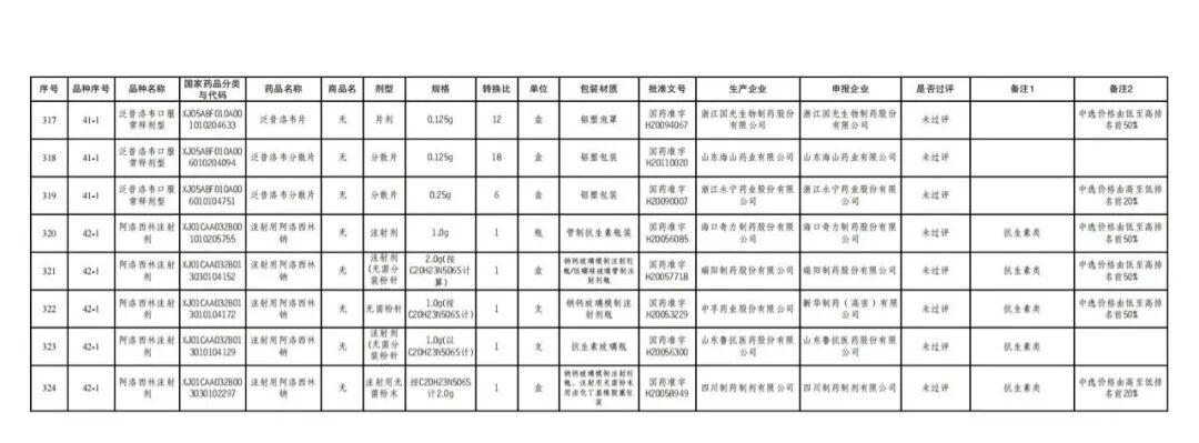 324个药品中选