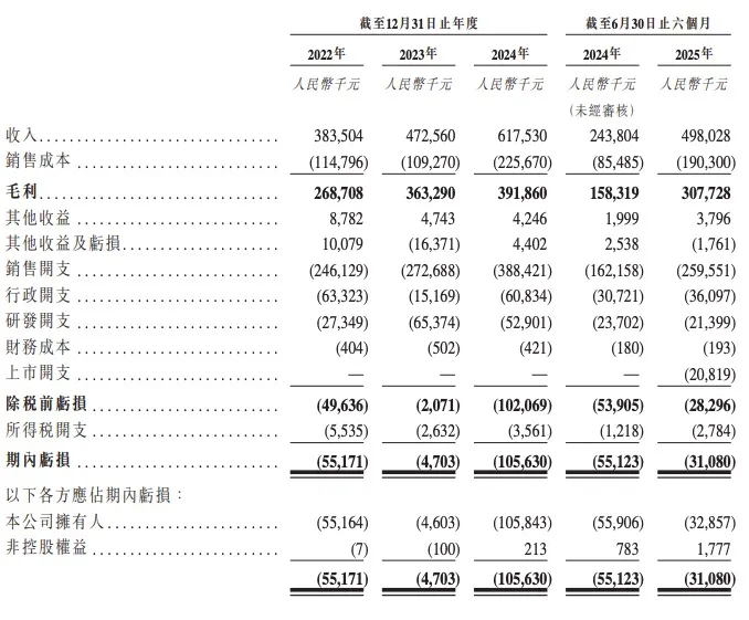 财务方面,德镁医药收入由截至2022年12月31日止年度的人民币383.5百万元增加至截至2023年12月31日止年度的人民币472.6百万元,并进一步增加至截至2024年12月31日止年度的人民币617.5百万元。截至2025年6月30日止六个月,录得收入人民币498.0百万元。