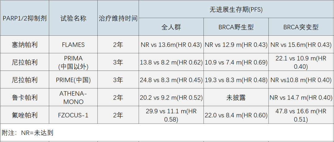 不同PARP1/2抑制剂用于卵巢癌“全人群”一线维持治疗的效果