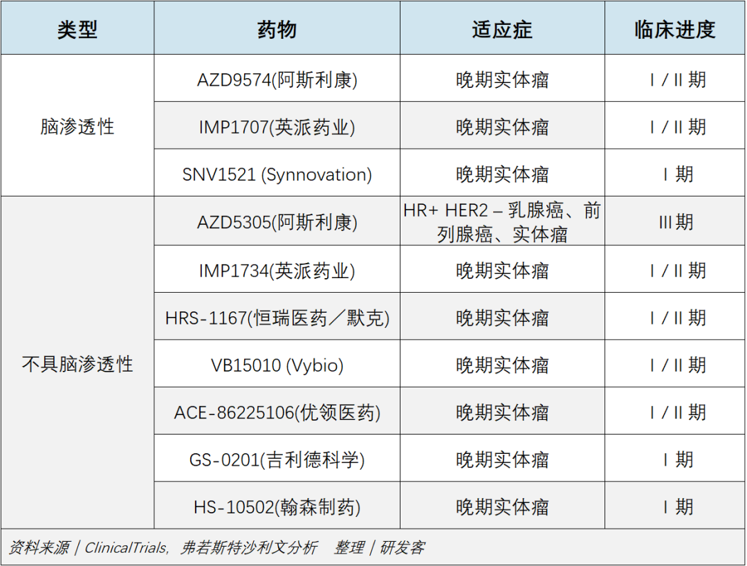 •阿斯利康和英派药业在拥有商业化的PARP1/2抑制剂的同时,还开发了临床阶段具有脑部渗透性和不具脑部渗透性的完整PARP1管线;