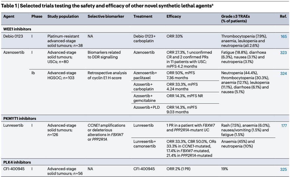 除了PARP,靶向ATR、WRN、EZH2、PLK1、PRMT5等新型合成致死疗法也在试验中展现良好前景。
