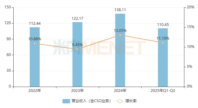 数据显示,近几年中美华东整体经营保持稳定增长趋势,2025年前三季实现营业收入(含CSO业务)达110.45亿元,同比增长11.10%,实现合并归母净利润为24.75亿元,同比增长15.62%。