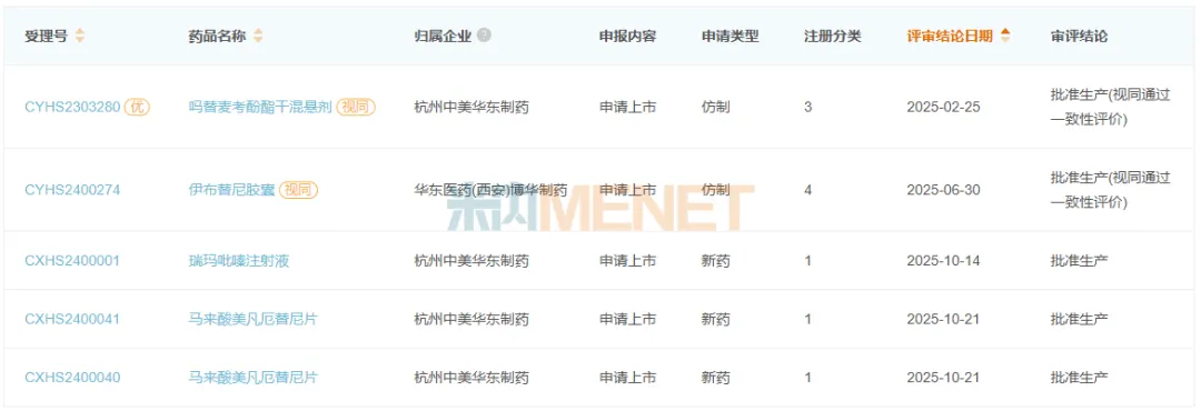 图2:中美华东2025年以来获批上市的新品
