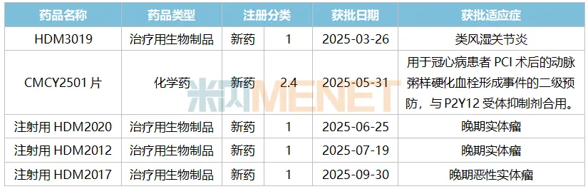 今年以来,中美华东陆续有8个新药获批临床,其中HDM3019、CMCY2501片、注射用HDM2020、注射用HDM2012、注射用HDM2017为首次获得临床批件。