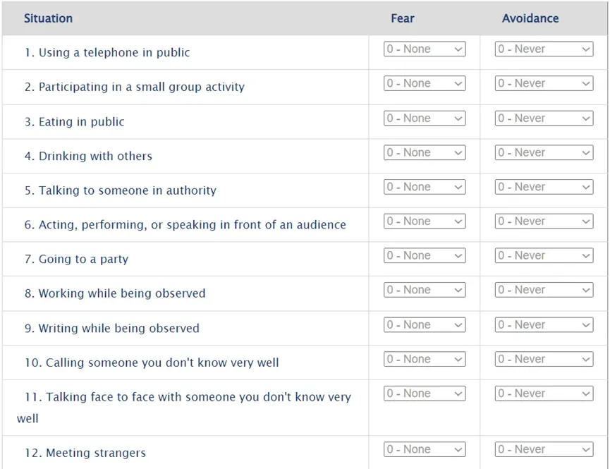 相对而言,LSAS更为客观——通过锚定具体社交情境,如在公共场合吃饭、被人注视、参加聚会、与陌生人交谈、公众演讲等,来测量人们的恐惧和回避程度。在帕罗西汀、舍曲林和文拉法辛等抗抑郁药的社恐注册性临床研究中,LSAS评分均为主要疗效终点。但LSAS的评估过程也更加复杂和耗时。