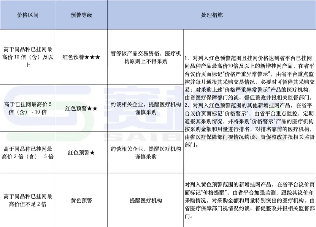 按照江苏省的规定,一个产品的挂网价格高于同品种已挂网最高价2倍(含)-10倍(含)以上的,均属于红色预警范畴,根据高出的价格区间,划分为红一星、红二星、红三星三种情况。