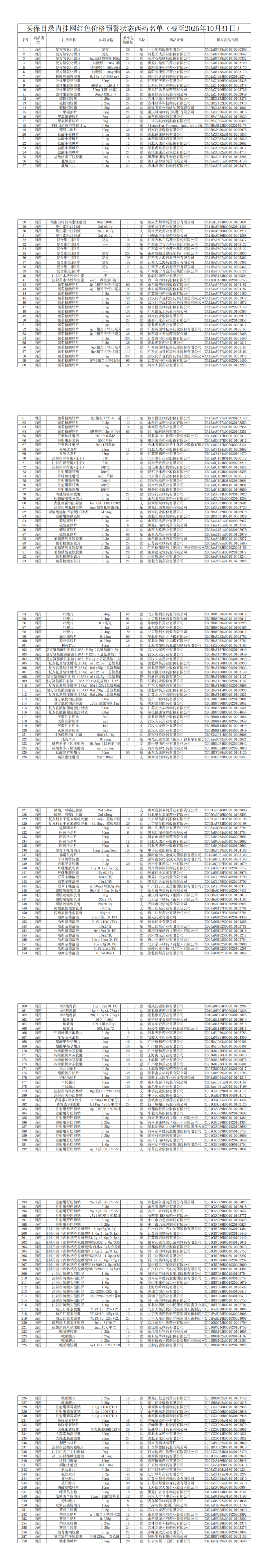 通知附件《医保目录内挂网红色价格预警状态西药名单(截至2025年10月31日)》,涉及西药460个。