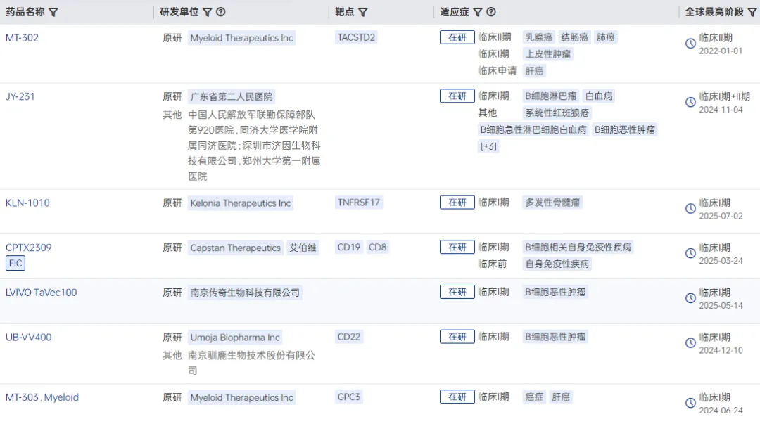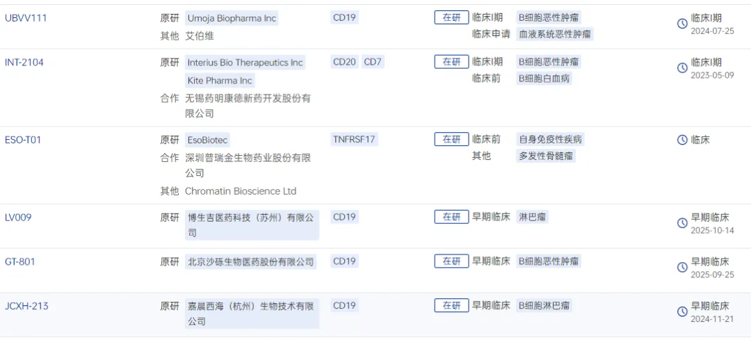 根据药智数据,全球在研体内CAR-T项目已有超过10个进入临床试验阶段,其中不乏中国药企。