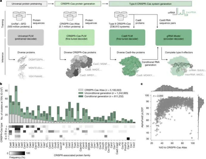 该模型能够生成高度功能化的CRISPR–Cas蛋白质,为基因编辑技术的发展提供了新的方向。
