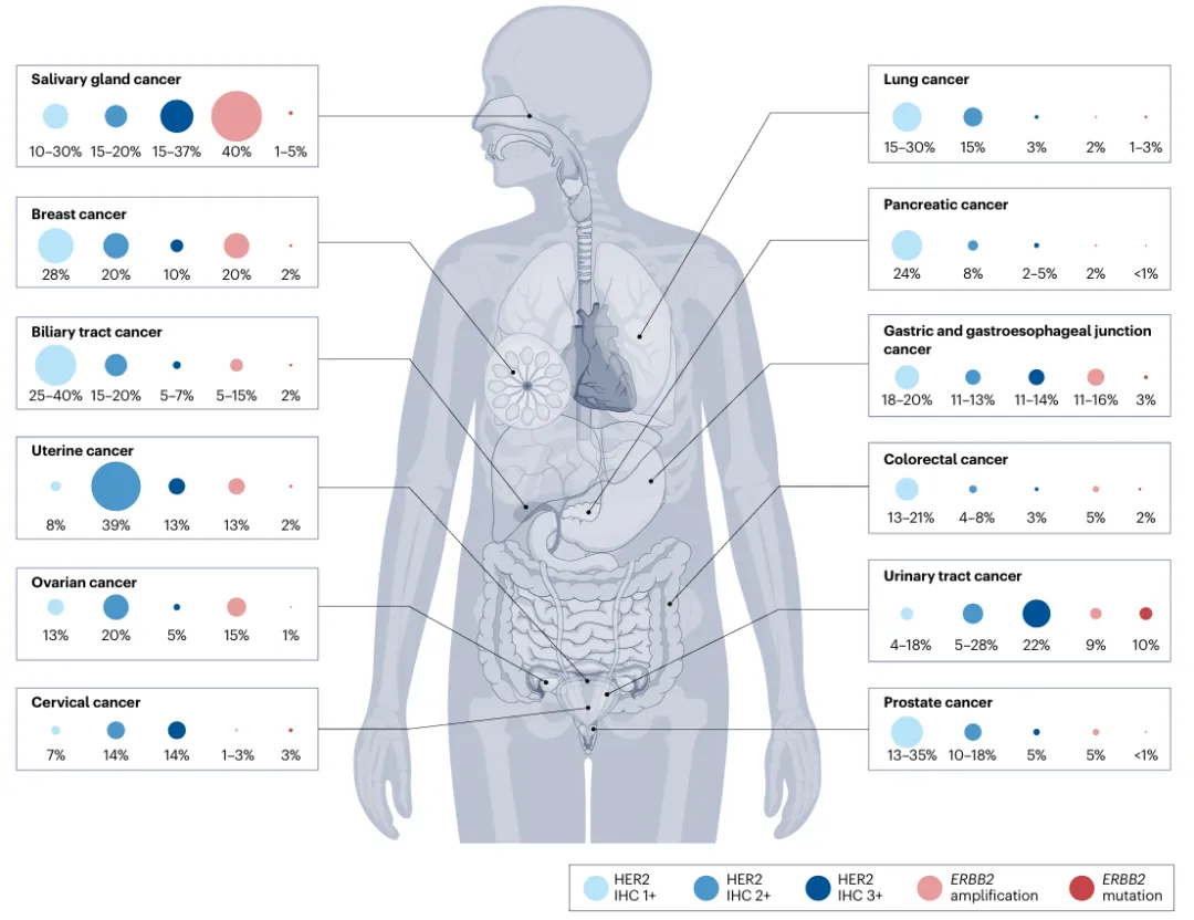 HER2(人表皮生长因子受体2)是一个在各种实体瘤里都有很广泛表达的靶点,并且和愈后严重相关。