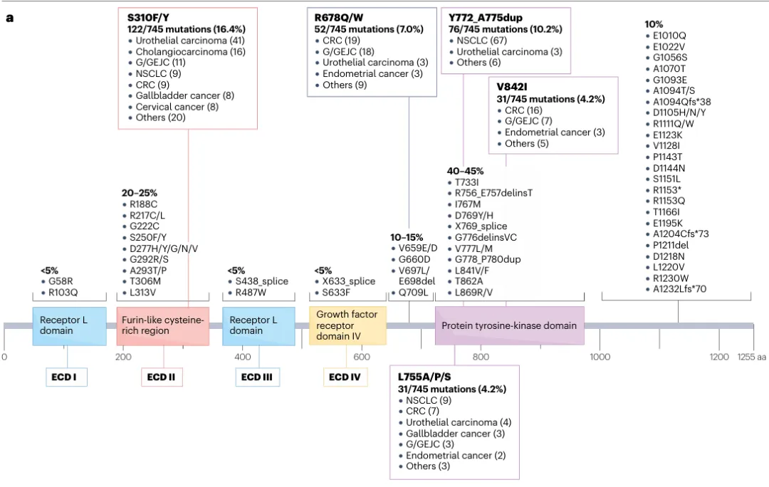 此外,HER2虽然作为一个广泛表达的基因,但过去这么些年只在乳腺癌领域掀起大的水花(胃癌领域也只是一点小浪),HER2上不同的位置的突变其实在各肿瘤分布也各有侧重。从需求侧看,借助HER2这颗“老树”上去结一些新枝,也推动着业界朝着各种“新表位”去做更深的探索。