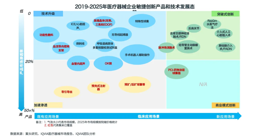 集采六年以来,医疗器械企业持续敏捷创新,集采品种的升级技术和产品(改良和渐进式创新产品)商业表现优越,但全新应用、全新疗法的商业化落地速度仍较为缓慢。