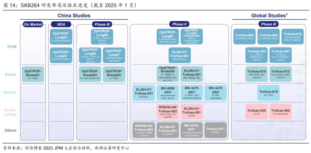 1)2020-2021年与第一三共达成三项临床合作,探索K药和第一三共Trop2 ADC产品Dato-DXd治疗NSCLC的疗效,分别是TROPION-Lung02 、TROPION-Lung07和TROPION-Lung08研究。