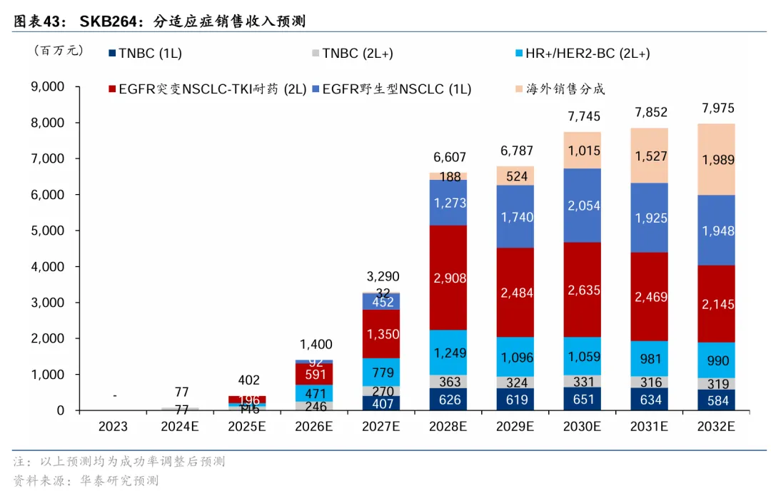 据华泰医药分适应症测算,sac-TMT有望在2032年冲击80亿元的销售峰值。由于有海外销售分成的存在,sac-TMT带来的净利润是相当可观的。