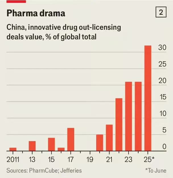 此前,中国制药业主要以仿制药生产、原料供应以及为西方企业开展临床试验闻名。而在过去十年中,产业得到重塑:药品审批流程持续优化,针对重大疾病的药物纳入优先审评通道,监管体系逐步与国际标准接轨。