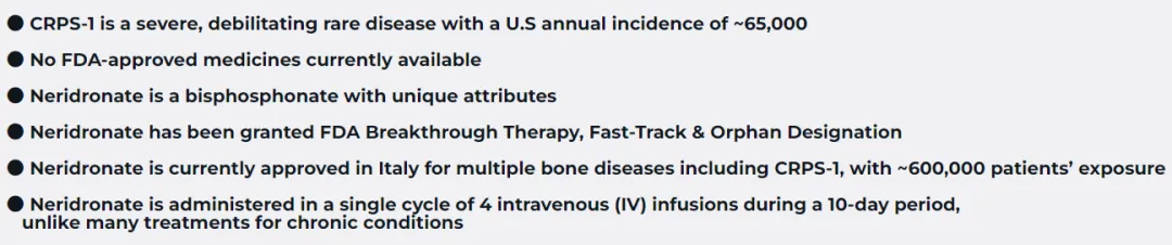 Pharma是双膦酸盐发现和开发的公认领导者,包括neridronate的研发。Neridronate基于两项CRPS