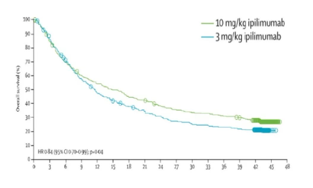 本图来源于文献:Ascierto PA et al. Ipilimumab 10 mg/kg versus ipilimumab 3 mg/kg in