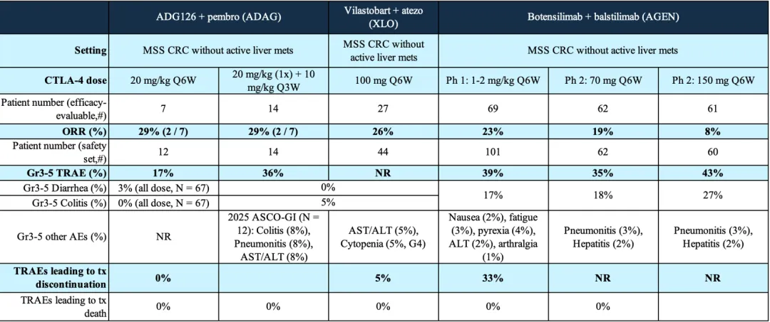 MSS CRC可谓是已知最“冷”的肿瘤之一。约82%的患者PD-L1表达低于1%,肿瘤微环境中调节性T细胞(Treg)占比却高达40%,这意味着这类患者高度耐药,且传统免疫治疗如PD-1单药、PD-1单药联合第一代CTLA-4响应率近于零,而联合化疗或ADC的响应率仅为个位数。