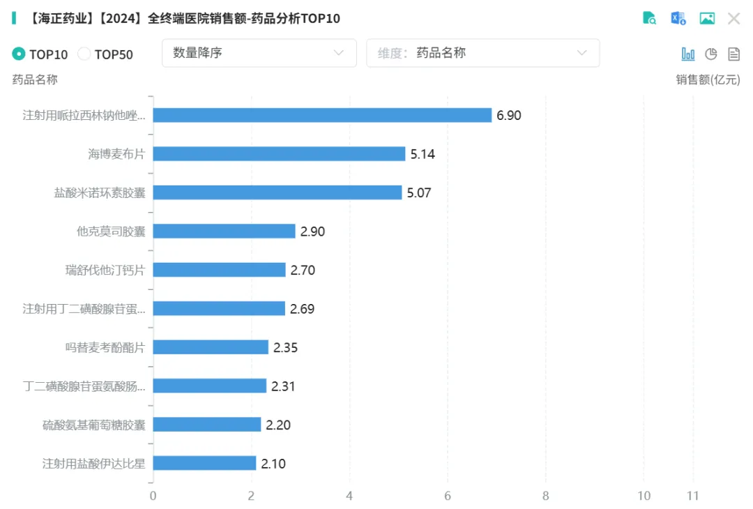其中最主要的几个品种为:注射用哌拉西林钠他唑巴坦钠、盐酸米诺环素胶囊和海博麦布片。前两者均来自辉瑞转让,仅后者为海正自主研发。