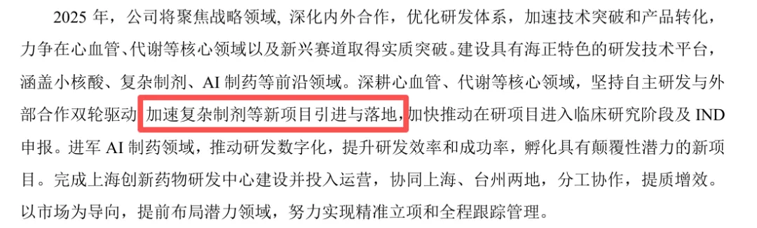 在此情况下,海正今年提出了2025计划,坦言目标就是“重回第一梯队”,而其中重心之一就是复杂制剂。
